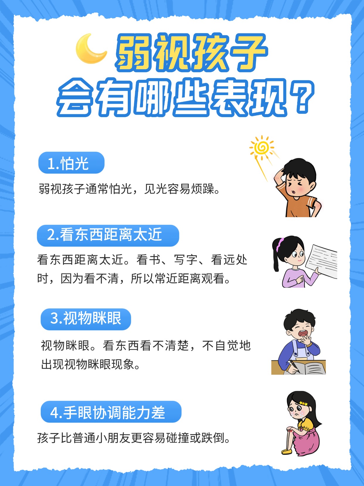 ①.怕光:弱视孩子通常怕光,见光容易烦躁。
