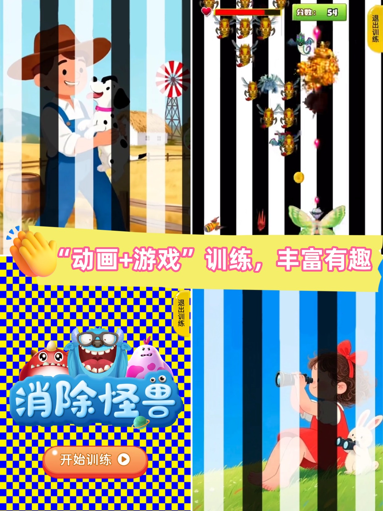 软件内丰富光栅,趣味游戏训练+高清光栅动画库,孩子弱视训练体验感满分~