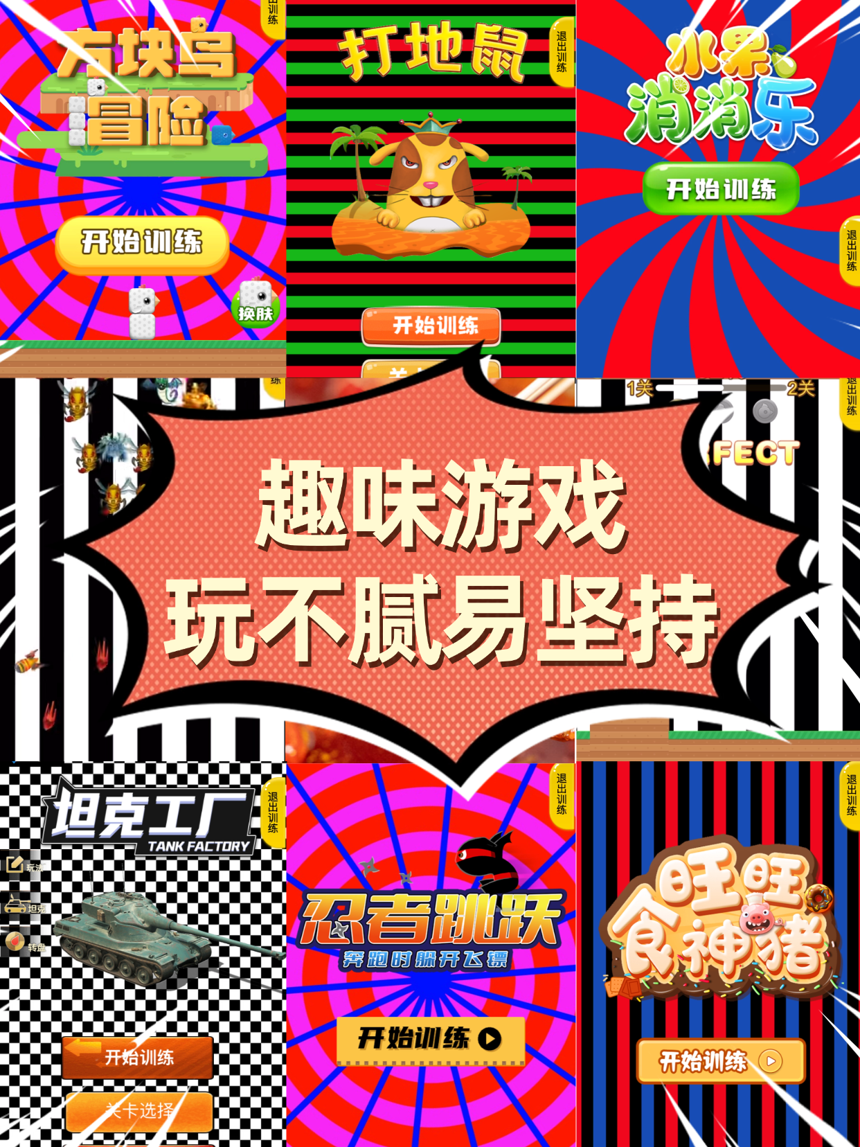 软件内不仅有益智游戏,光栅动画还整合了光栅、精细刺激、融合训练等科学模块,改善更全面。