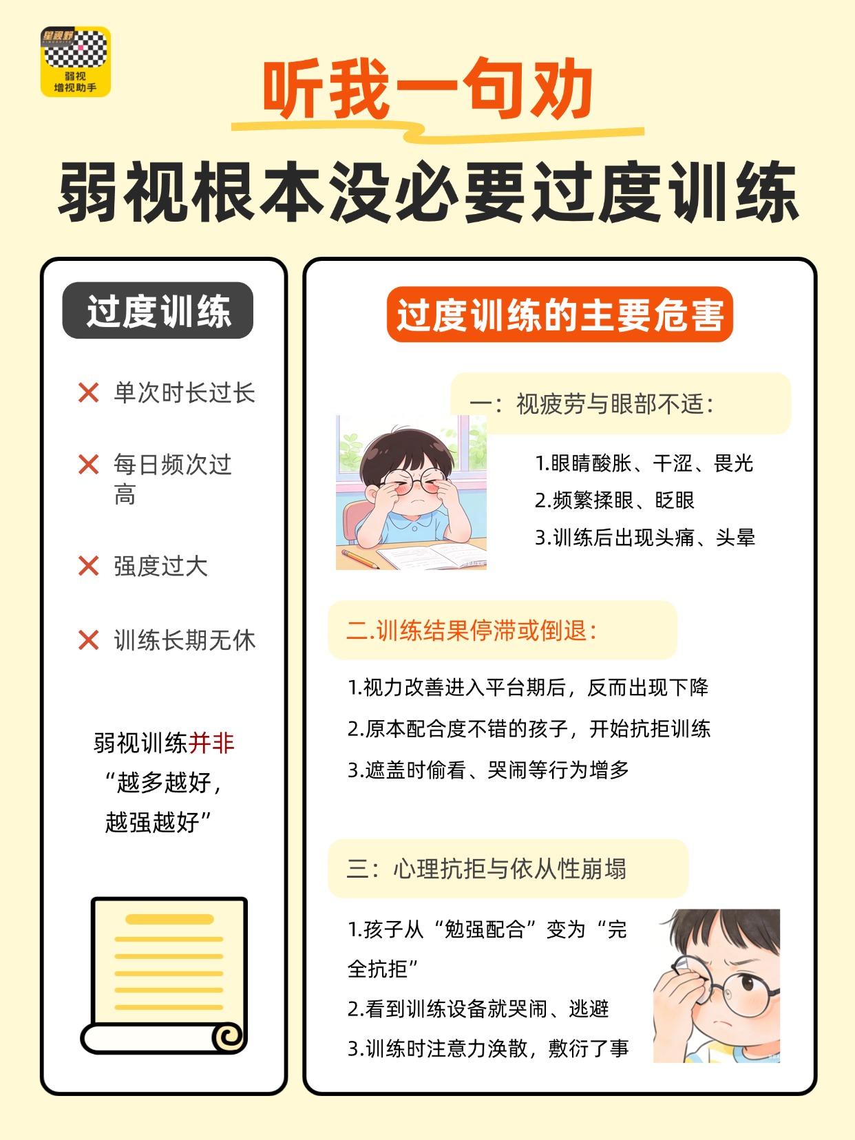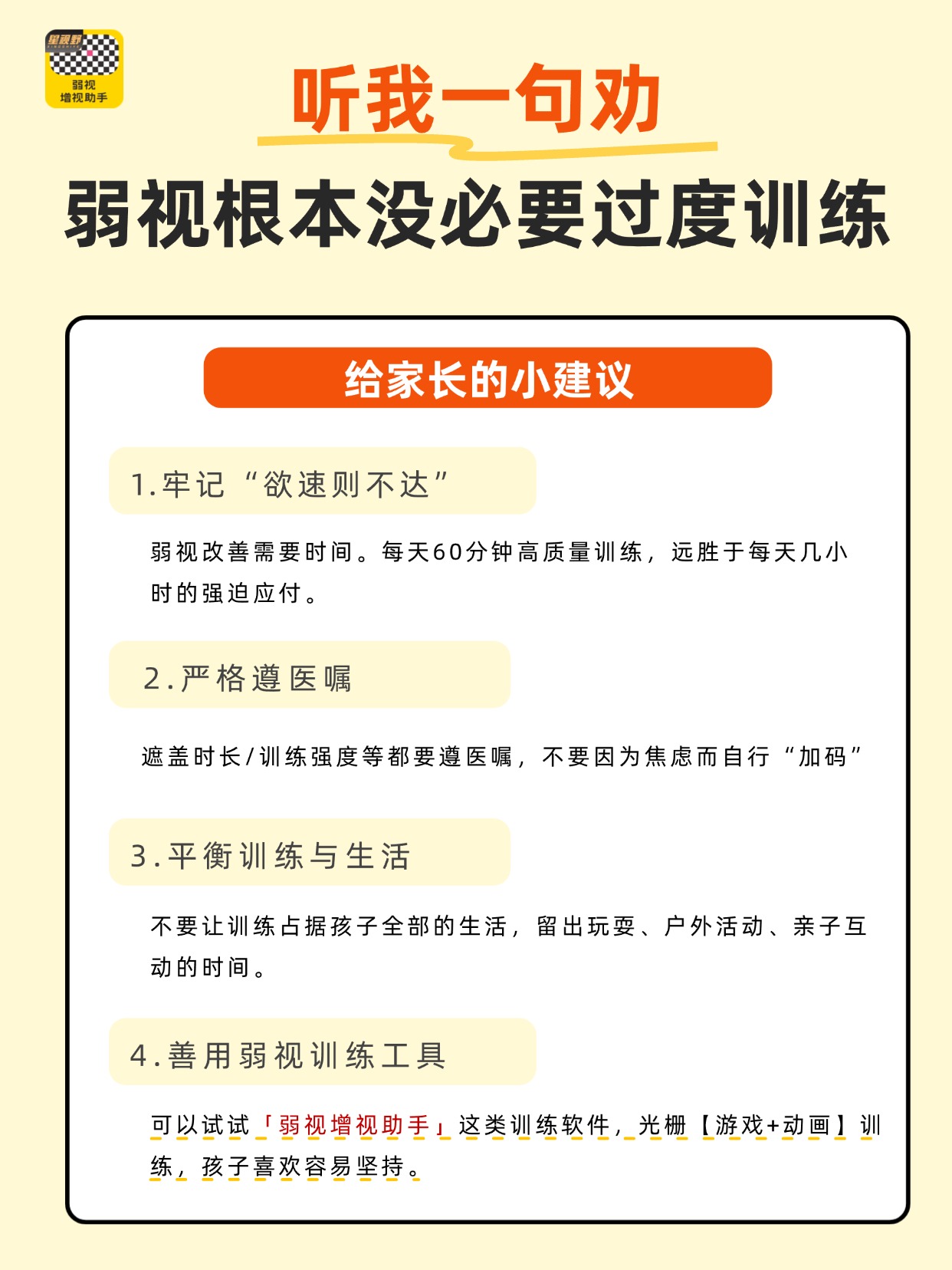 像这些情况都是很不好的,弱视训练并非“越多越好,越强越好”。