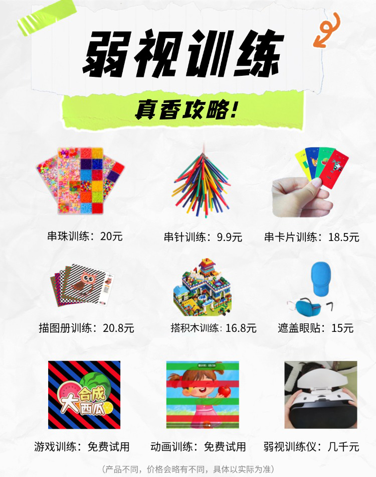一般游戏/动画类的训练,孩子会更喜欢,孩子感兴趣才能长久的,积极的做训练,对弱视眼睛改善的帮助会更大哦!