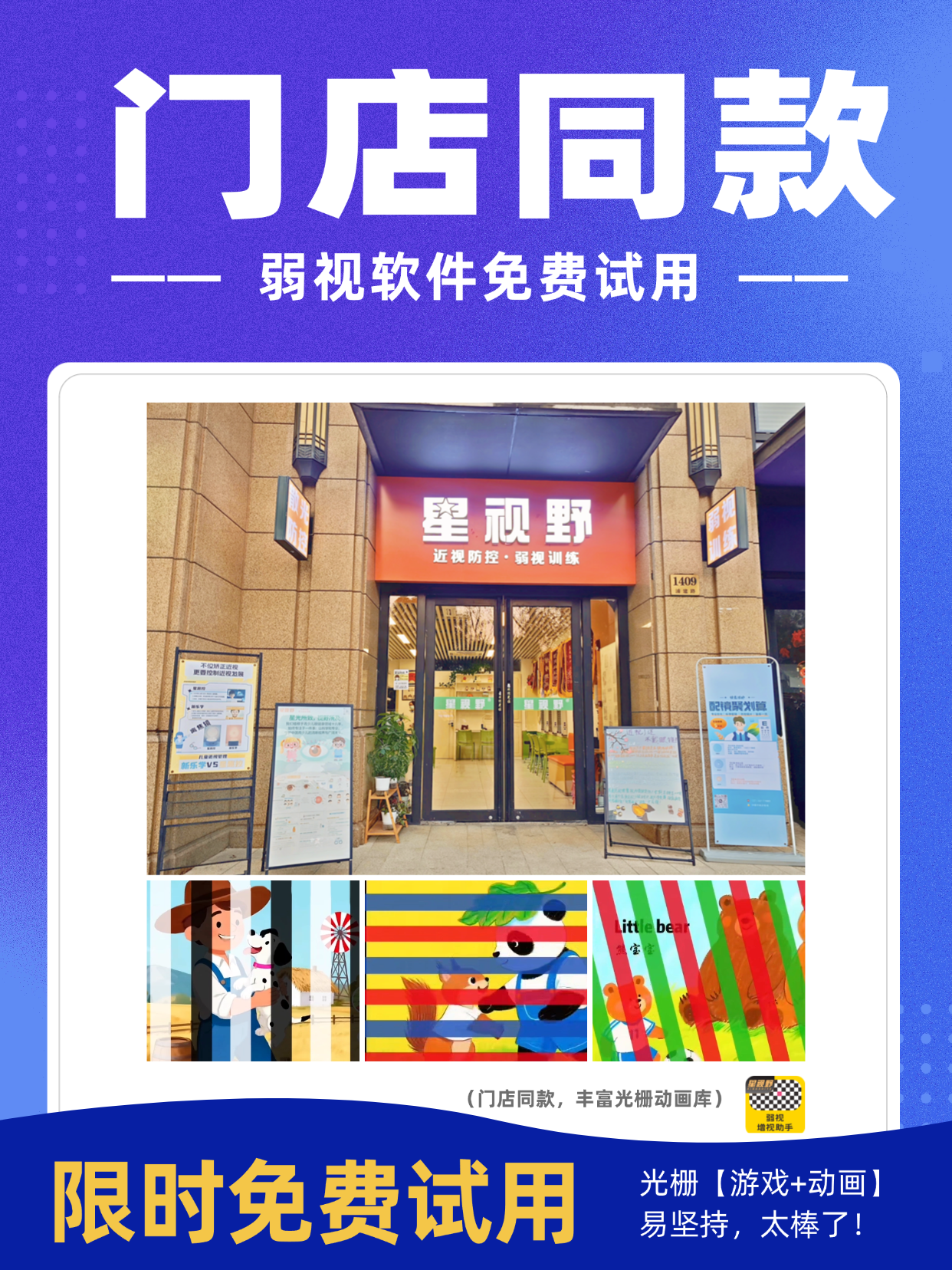 快点击左下角【立即领取】,得门店同款弱视训练软件免费试用吧!